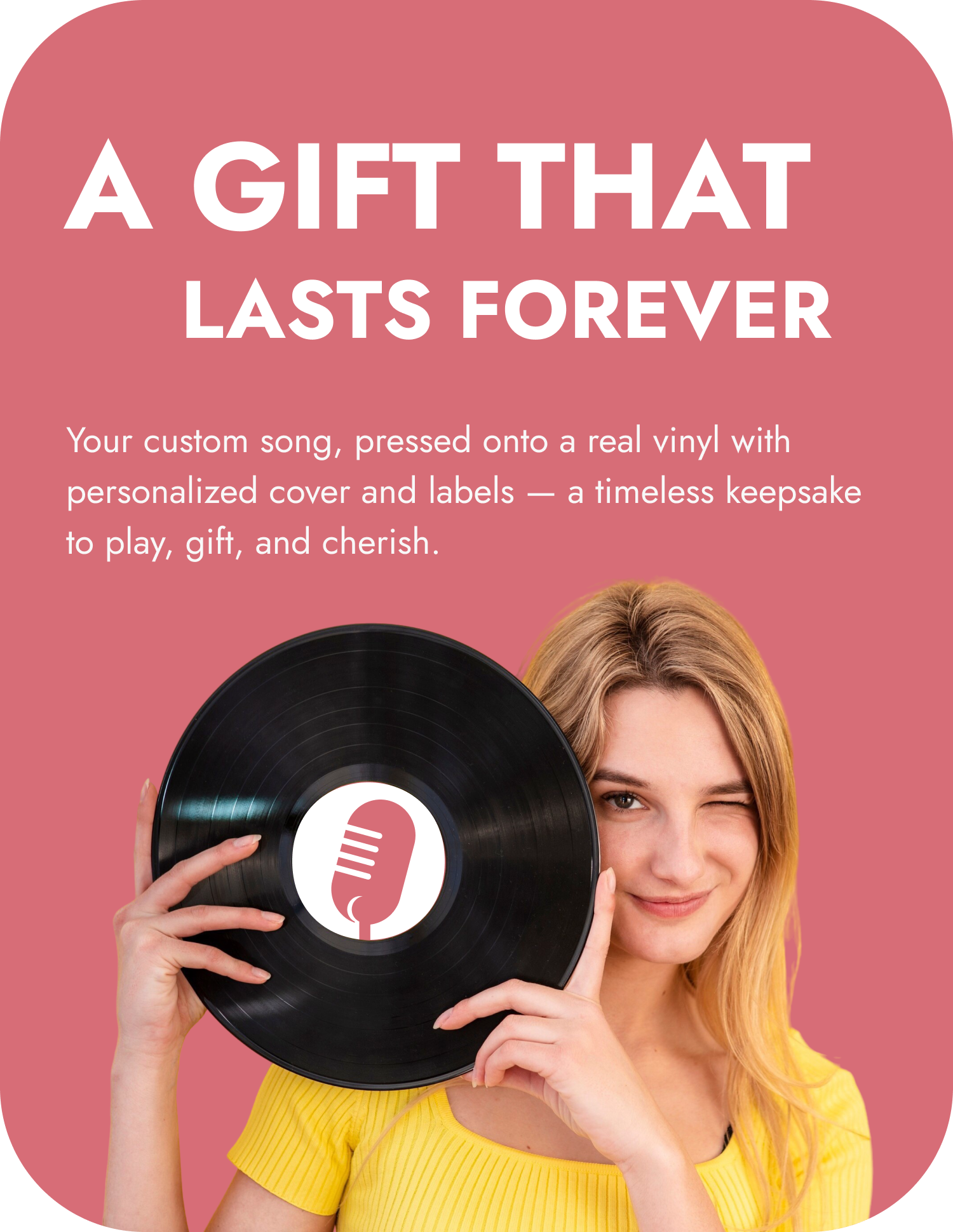 Turn your custom song into a forever gift — add a personalized vinyl to your order today.