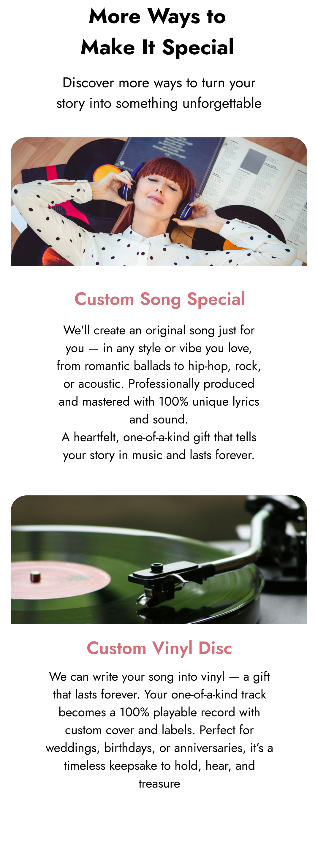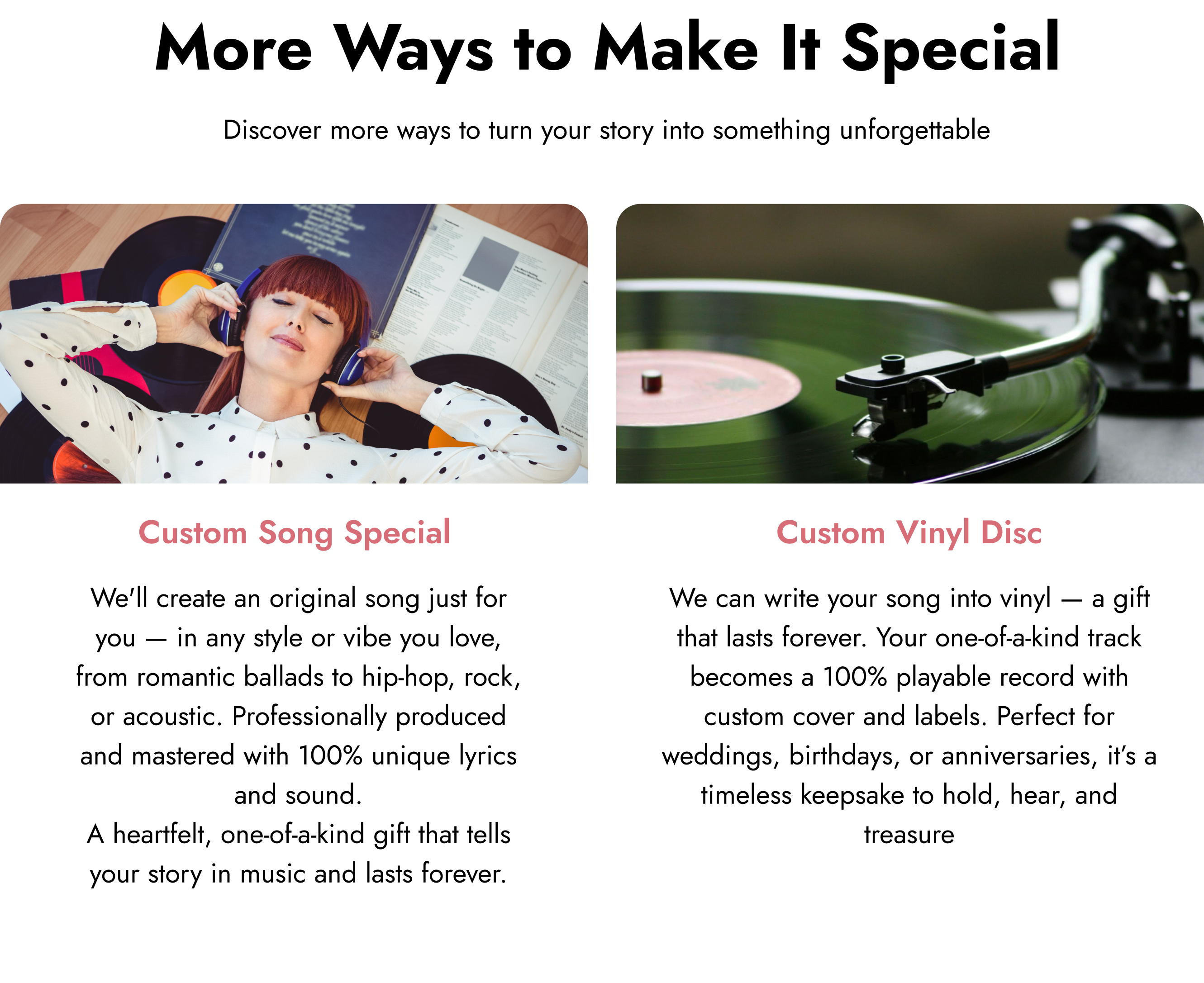 We'll turn it into a song, video and vinyl - unique products you will never forget