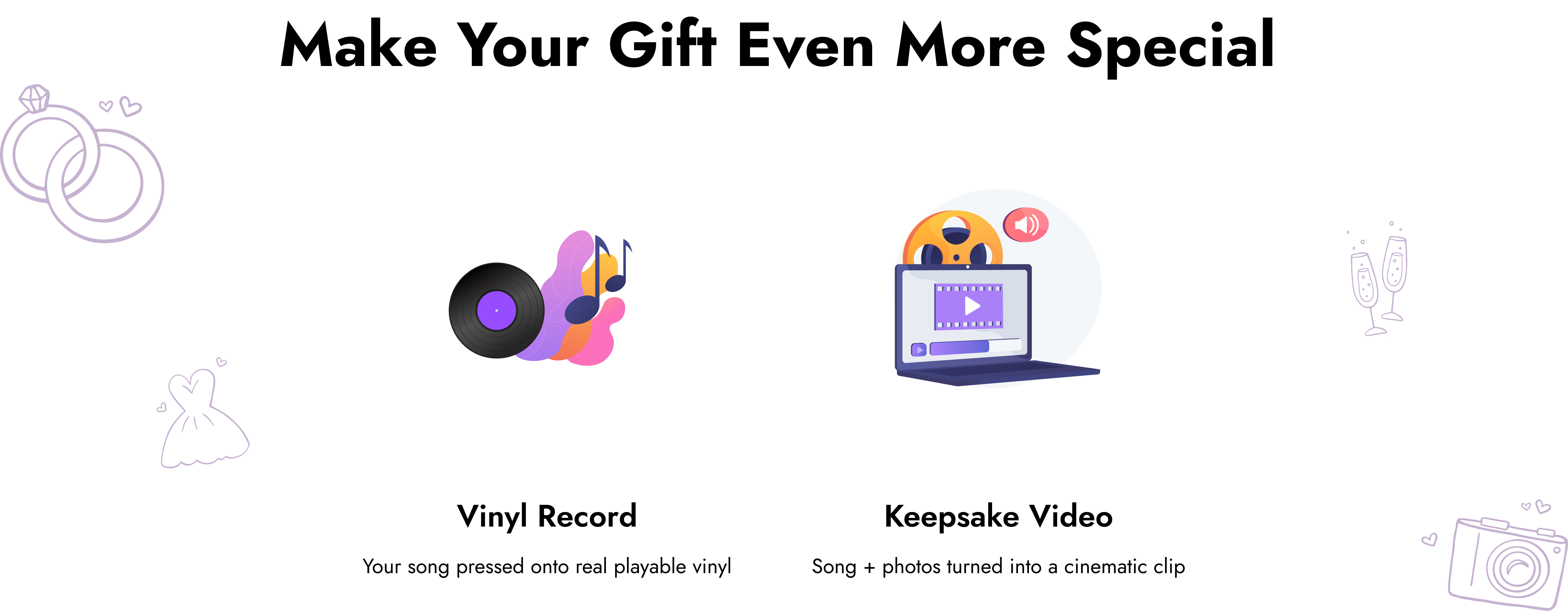 Of course! Upload your favorite photos, and we’ll turn your song into a personalized video — the perfect way to bring your story to life.